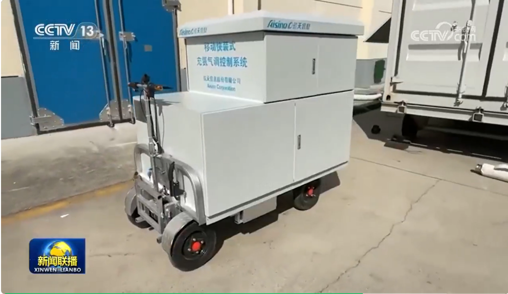 2024年12月18日晚《新闻联播》中秋粮收购现场出现了航天信息自主研发的科技产品移动式充氮气调系统