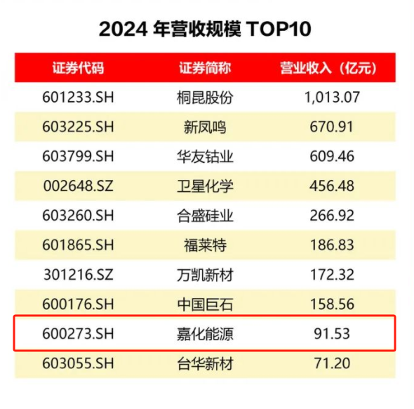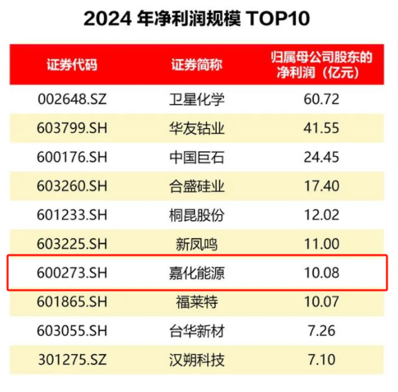 近日,嘉兴市上市发展公司促进会以嘉兴市66家A股上市公司所披露的2024年度报告数据作为依据,排列出2024年营收规模TOP10、2024年净利润规模TOP10两张榜单,嘉化能源均位列其中!