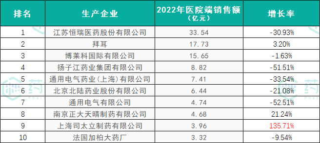 二、恒瑞医药品种登顶“销冠”,司太立跻身前十强!