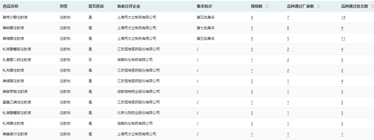 一、12个造影剂品种过评,恒瑞医药、司太立领跑!