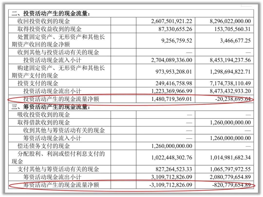 图7:母公司现金流量表(数据来源:企业年报)