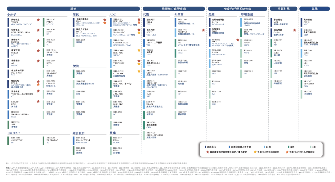 截至最后实际可行日期,恒瑞医药拥有17款已上市的新分子实体创新药和逾90款处于临床及更后期阶段的新分子实体在研创新药。