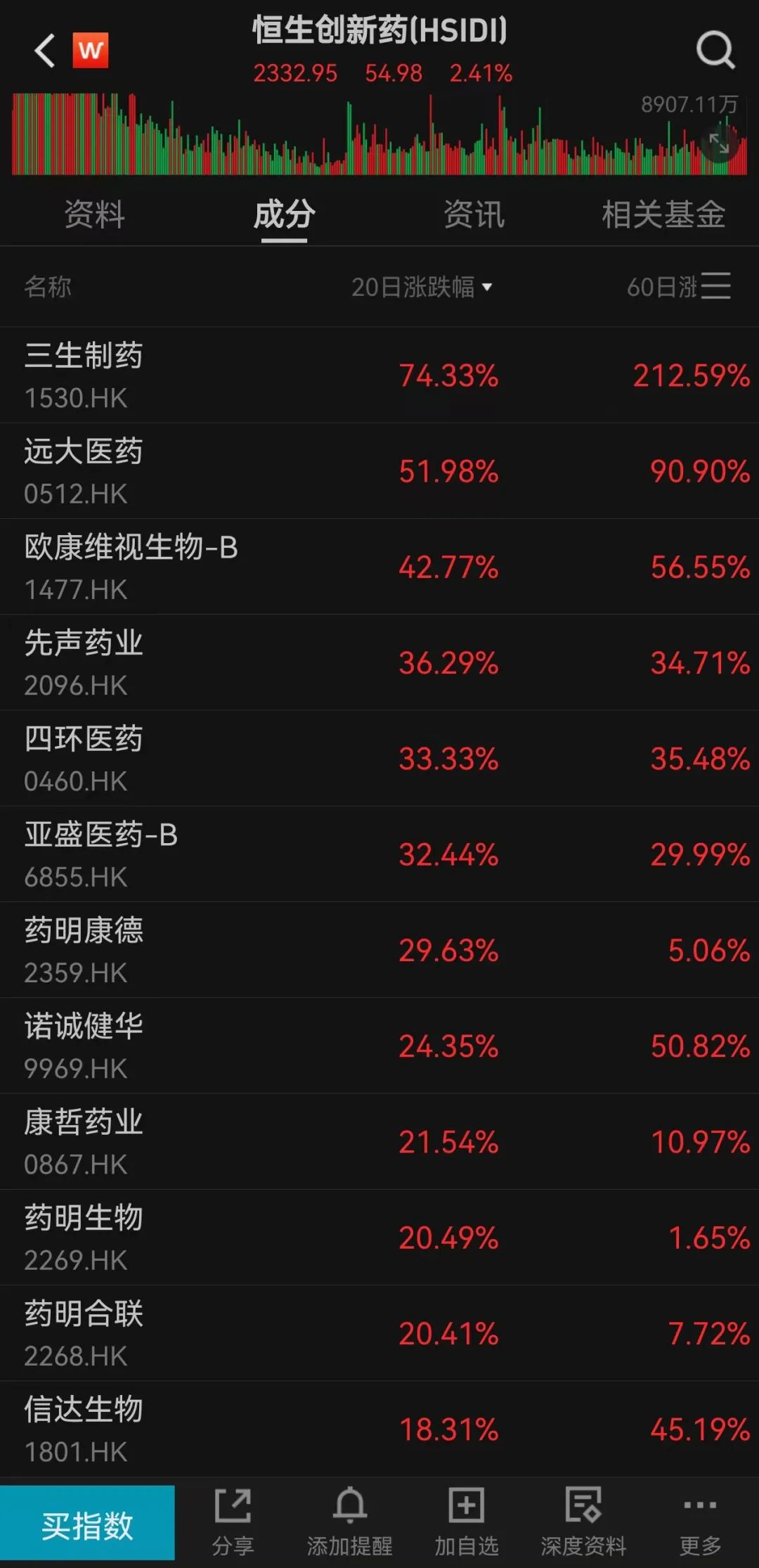 恒瑞医药5月21日公布配售结果,5月22日赴港上市,本次发售价44.05港元,A股股价折合港元为60.82港元,有38%的溢价(港股折价27.5%),想象空间有点大;而且本次发售2.25亿股,对应市值只有100亿,有望和宁王一样迎来炒作。更为关键的是,近期医药股尤其创新药明显迎来绝境反转。