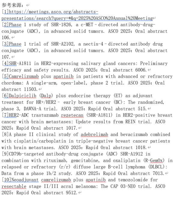 本次ASCO年会,恒瑞医药4项研究入选口头报告,5项研究入选快速口头报告,创新药成果涵盖多个前沿治疗领域,其学术价值与临床意义获得国际同行高度认可,不仅体现了公司在抗肿瘤新药研发领域的国际领先水平,更向全球学术界展示了中国医药创新的硬核实力。
