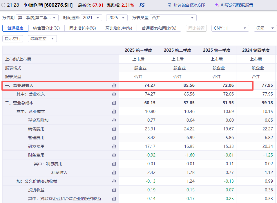 恒瑞医药的公众号推送了三季报的业绩,但是这数字看着有点不对劲,增速怎么可能是这个数?