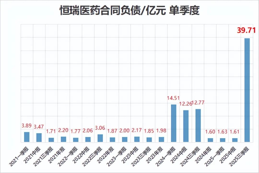 果然,恒瑞三季报的合同负债创了历史新高,达到了39.71亿元。