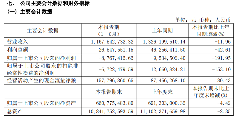 中央商场半年报主要财务数据