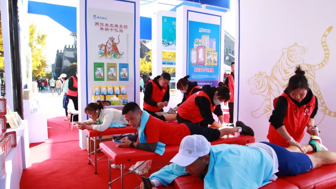此外,羚锐还在赛道中途设置了啦啦队加油站,青春靓丽的啦啦队员们用热情奔放、活力四射的舞蹈为跑友们加油鼓劲;赛道终点的羚锐按摩体验区,工作人员们手法娴熟的为完赛跑友们按摩贴敷,帮助他们缓解肌肉僵硬、酸痛,保持更好的运动状态;体验区旁的打卡墙前,跑友们高举完赛奖牌兴致勃勃地合影留念,与“两只老虎”一起留下难忘的纪念。