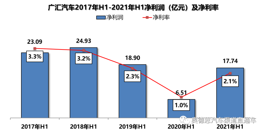 广汇汽车净利润为人民币17.74亿元,净利率为2.1%。广汇汽车表示,净利润上升主要是同期受疫情影响,本期业绩恢复经营毛利规模上升导致。