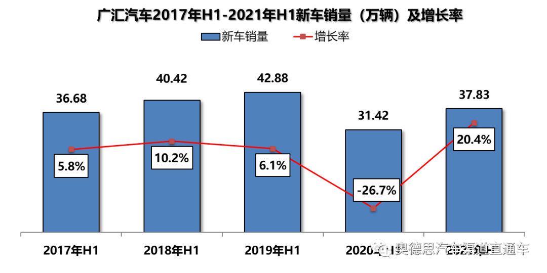 2021年上半年,广汇汽车线上线下深度融合,积极促进新车业务发展,实现新车销售37.83万辆,较2020年同期增长20.4%。
