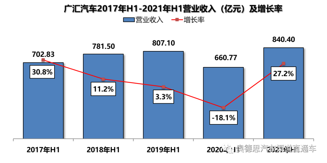 2021年上半年,广汇汽车营业收入为人民币840.40亿元,较2020年同期增长27.2%。经营业绩稳步提升主要是受到同期疫情影响,本期业绩恢复销量同比上升导致。目前,已恢复至2019年同期水平。