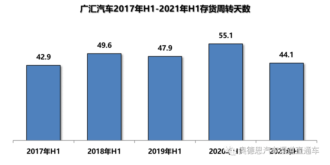 2021年上半年,广汇汽车存货周转天数为44.1天。