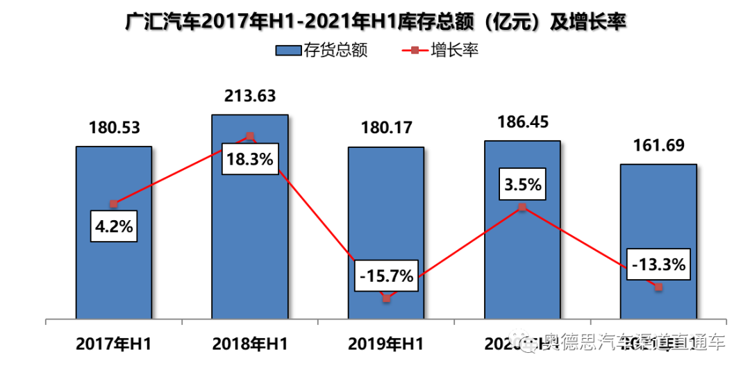 广汇汽车存货主要包括整车和配件(包括零部件和装饰装潢件)。2021年上半年,广汇汽车存货为人民币161.69亿元,较2020年同期下降13.3%。存货下降主要是报告期内广汇汽车加强库存管理,库存当量逐步下降,提升存货周转效率导致。