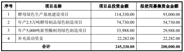 此外,募集资金还将被用于年产2.5万吨酵母制品绿色制造项目、年产5000吨新型酶制剂绿色制造项目,以及补充流动资金。