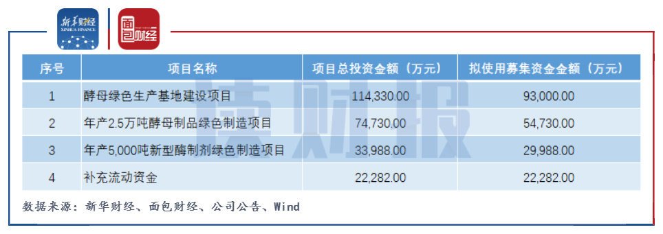 年产5000吨新型酶制剂绿色制造项目包含新建年产3500吨酶制剂和搬迁年产1500吨酶制剂。除了上述三个项目,募集资金中余下的2.23亿元将用于补充流动资金。
