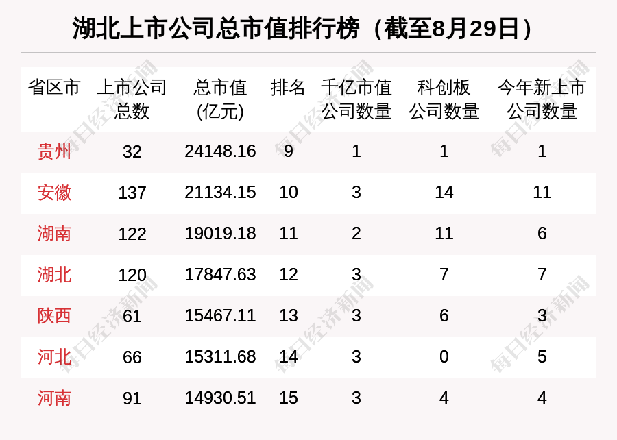 据统计,与湖南相比,湖北上市公司总数比湖南少2家;千亿市值公司数量比湖南多1家;科创板公司数量比湖南少4家;今年新上市公司数量比湖南多1家。