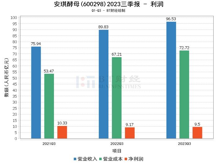 在利润方面,安琪酵母2023年三季度的营业收入为96.53亿元,相比上年同期的89.83亿元增长7.46%。营业利润为11.17亿元,相比上年同期的10.74亿元增长4.00%。净利润为9.5亿元,相比上年同期的9.17亿元增长3.60%。毛利率为24.67%,相比上年同期的25.18%略有下降。净利率为9.84%,相比上年同期的10.21%略有下降。这些变化主要是由于汇兑收益减少、处置喜旺公司、应收账款坏账准备减少、固定资产处置收益增加、非全资子公司盈利水平同比增加等原因所致。