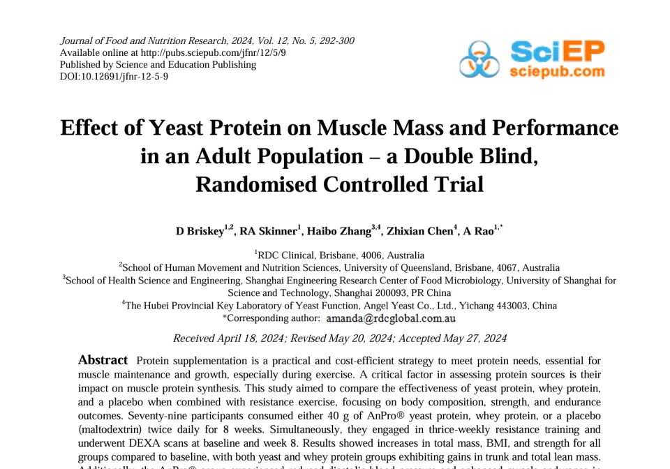 对运动员而言,酵母蛋白也是补充营养增强力量的好帮手。2024年,澳大利亚昆士兰大学人类运动和营养学院发表了一项临床研究,对比了乳清蛋白、酵母蛋白对运动爱好者的功效。结果发现:酵母蛋白不仅能提高80%卧推评分,还能降低人体舒张压。