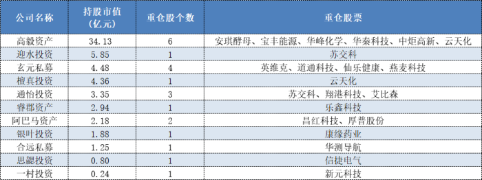 表格:部分百亿私募中报持仓个股情况(截至8月12日更新)