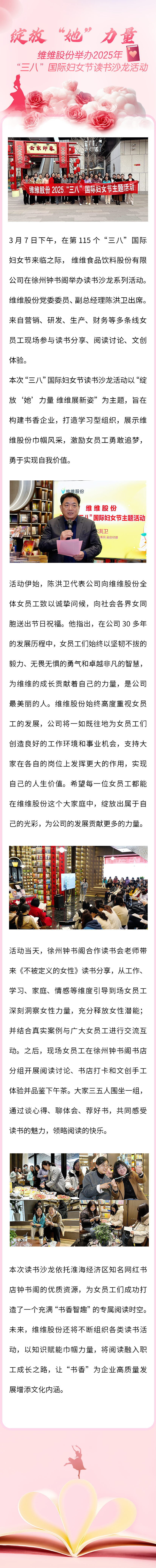 绽放“她”力量:维维股份举办2025年“三八”国际妇女节读书沙龙活动