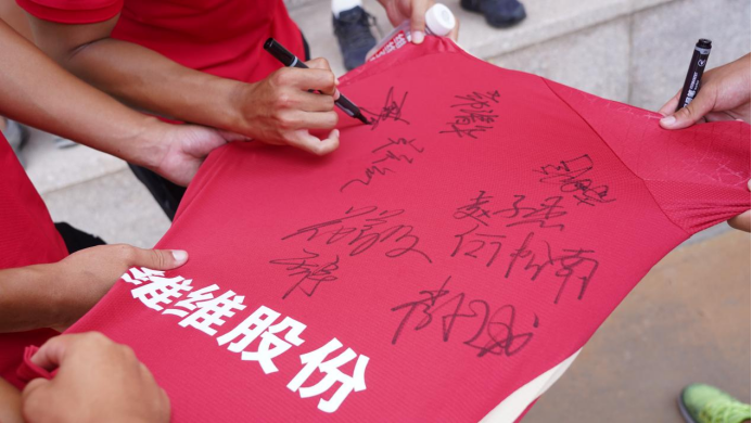 深耕故土,情系绿茵。近年来,维维股份持续投入资源,多维度助力徐州文体事业。作为本届“苏超”赛事徐州赛区首批冠名赞助商,维维股份不仅在竞赛端全力保障球队攻城拔寨,更在赛事推广、现场助威、赛场能量补给、球迷关爱等方面全力提供维维品牌支持,彰显维维健康欢乐价值。此次慰问不仅为球队带来实实在在的能量补给,也更好传递了维维股份对徐州队的深切关怀,对家乡徐州文体事业快速发展的坚定支持与热切期盼。