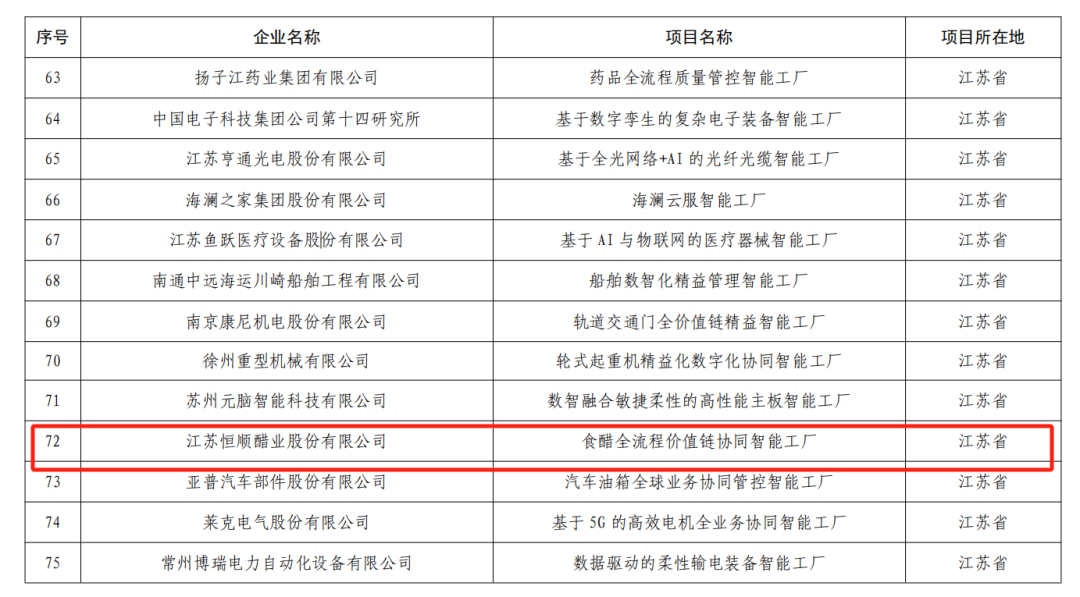 近日,工业和信息化部发布的“卓越级智能工厂(第一批)项目”结束公示,恒顺醋业申报的《食醋全流程价值链协同智能工厂》项目成功入选全国首批卓越级智能工厂名单。