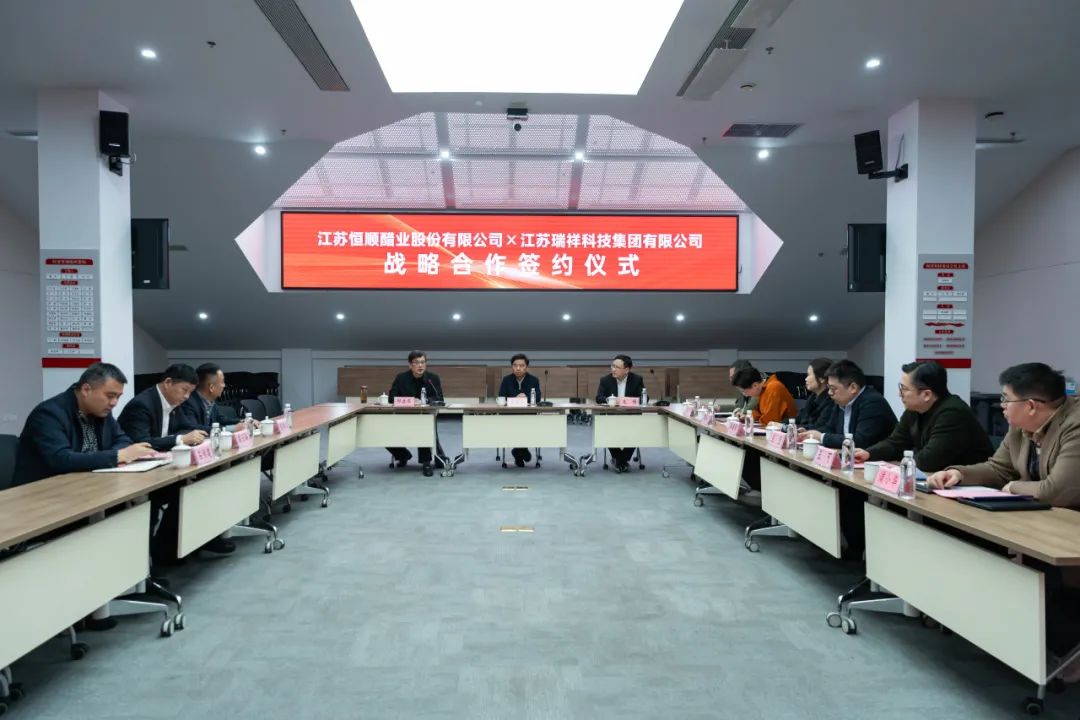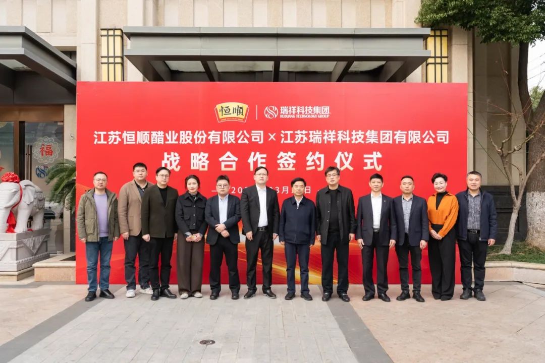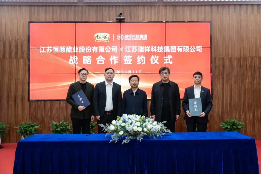 3月11日,恒顺醋业与瑞祥科技集团签署战略合作协议。镇江市人大常委会党组副书记、副主任、市总工会主席高国成,恒顺醋业董事长郜益农,瑞祥科技集团董事长朱博以及双方企业代表出席签约仪式。