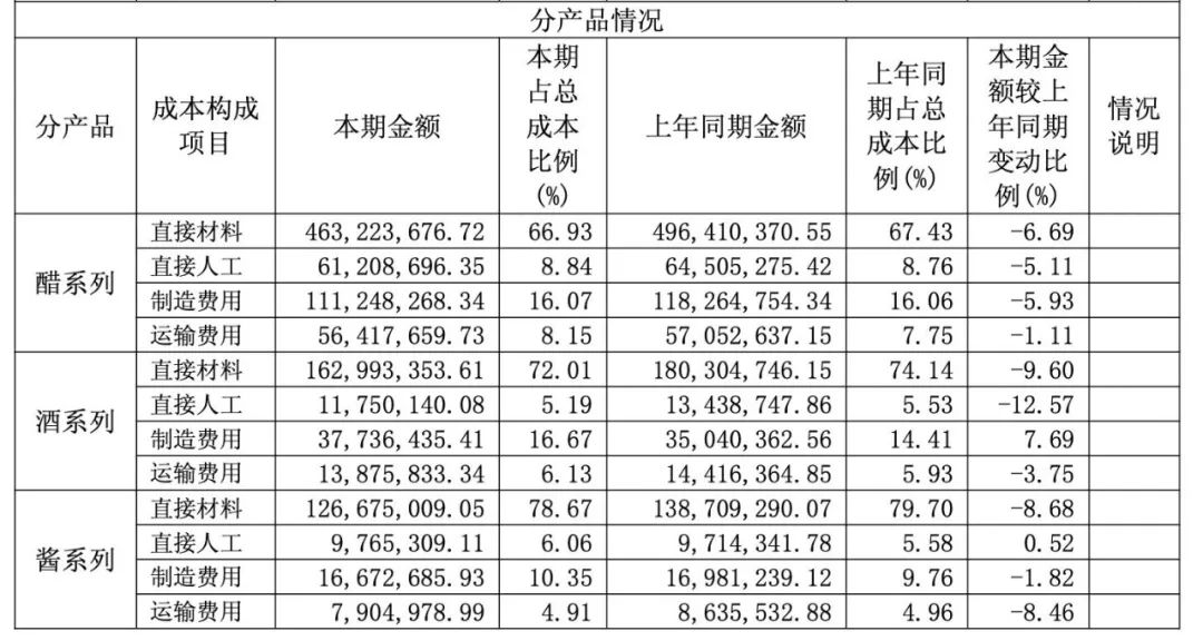 也就是说,从销售情况来看,恒顺醋业的三大核心产品,销量并没有大的改观。但在成本端,恒顺醋业的动作却不可谓不大。