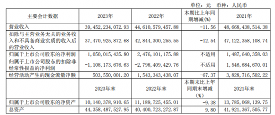 近日,酒钢宏兴发布2023年度报告。报告期内,公司铁、钢、材产量分别完成 783.2 万吨、901 万吨、891.6 万吨,实现营业收入 394.52 亿元;归属于上市公司股东的净利润-10.50 亿元;归属于上市公司股东的股东权益 101.40 亿元。