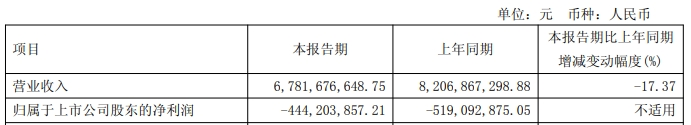 酒钢宏兴发布2025年第一季度报告,报告期内公司营业收入为67.82亿元,同比下降17.37%;净利润亏损4.44亿元。