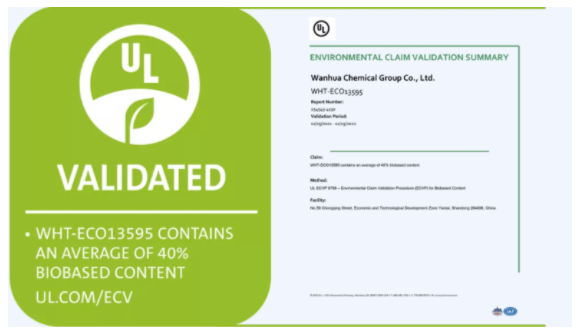 近日,万华化学生物基TPU产品WHT-ECO13595获颁UL绿色环境声明验证证书,这是业内首个获得UL认证的生物基TPU产品。该认证的取得,不仅彰显了万华化学生物基TPU产品的创新实力,更是对万华化学致力于推动全价值链低碳的高度认可。