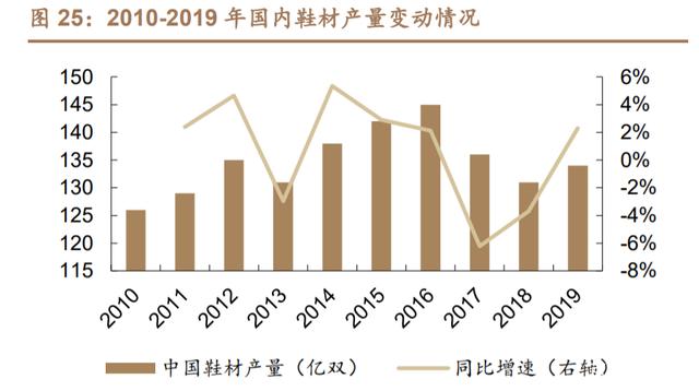 人造板市场或成 MDI 需求新增长点。总体来看,国内鞋产量基本保持稳定,但随着部分运动鞋厂商逐步搬迁至东南亚地区,运动鞋产业转移趋势明显。2019 年我国鞋材产量约为 134 亿双,与 2012 年基本持平。