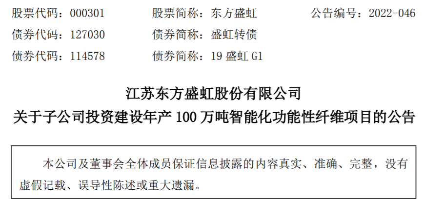 3月23日,东方盛虹接连发布了投资建设可降解材料项目和智能化功能性纤维项目的公告。