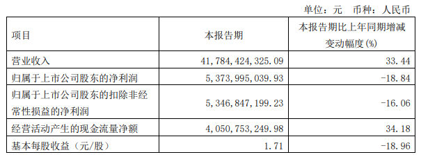 4月25日晚间,万华化学相继发布2022年第一季度报告及经营数据。报告期内,公司实现营业收入417.84亿元,同比增长33.44%;归属于上市公司股东的净利润53.74亿元,同比减少18.84%;归属于上市公司股东的扣除非经常性损益的净利润53.47亿元,同比减少16.06%;经营活动产生的现金流量净额40.51亿元,同比增长34.18%。