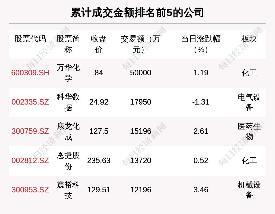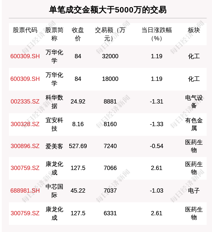 透视大宗交易:6月7日共成交191笔,万华化学成交5亿元