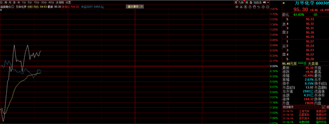 从万华化学现在的股价表现上看,业绩方面的“利好”影响更大些。截至发文,万华化学的股价为95.30元,涨幅0.49%,股票总市值2992亿元。