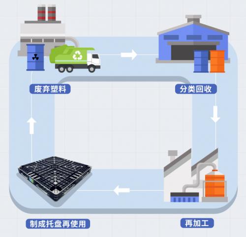 与原油制造塑料相比,以废塑料为原料制造塑料可减少约45%的污水排放和60%~70%的能耗,使用废弃包装物制作托盘,既提高了废塑料利用率,又能有效减少环境污染,为低碳生活注能添彩!
