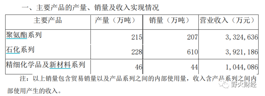 公司三大产品,聚氨酯系列实现销售收入332.5亿元,石化系列产品收入392.1亿元,精细化学品及新材料系列实现收入104.4亿元。