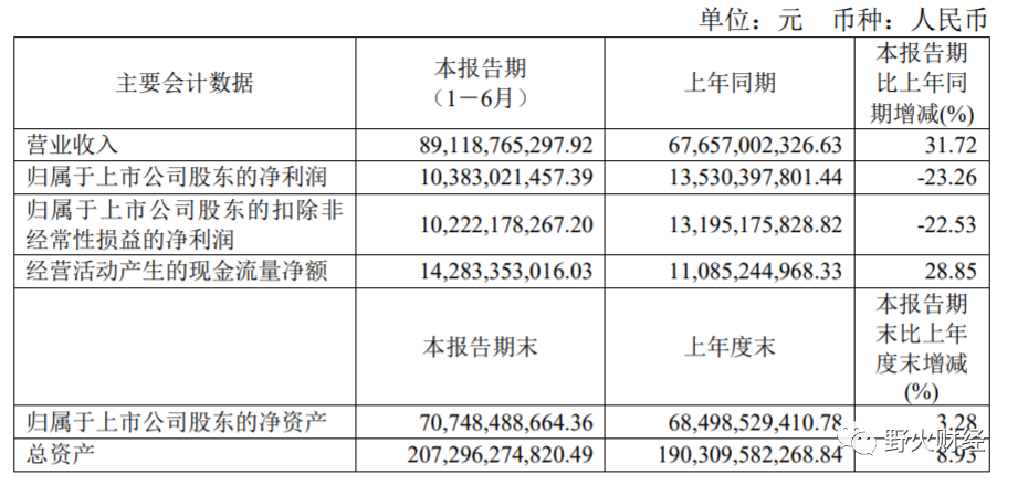 万华化学7月28日晚间披露了半年度报告,基本每股收益3.31元,同比去年同期的4.31元/股,下滑23.2%。