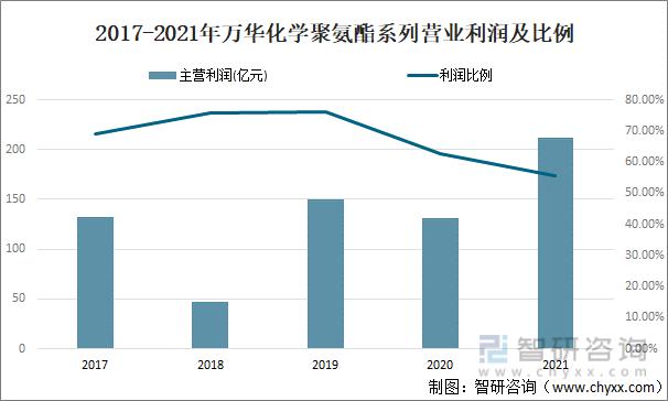2017-2021年万华化学聚氨酯系列营业利润及比例