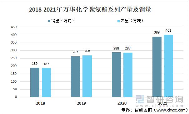 2021年万华化学聚氨酯系列产量为401万吨,同比增长39.7%;万华化学聚氨酯系列销量为389万吨,同比增长35.1%。