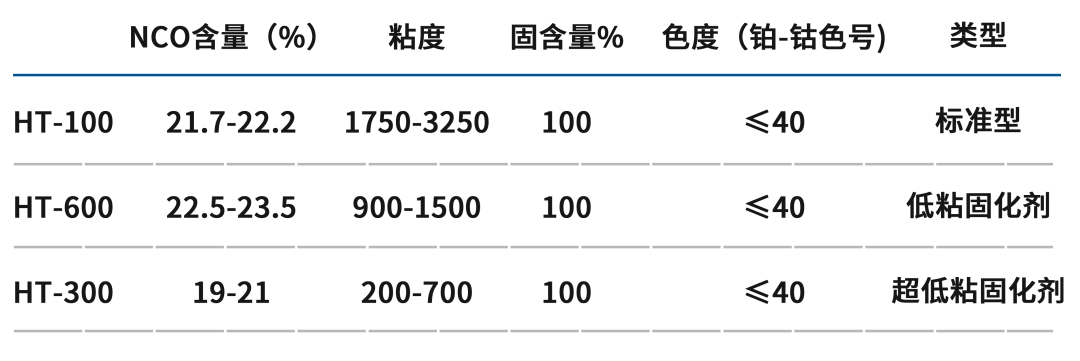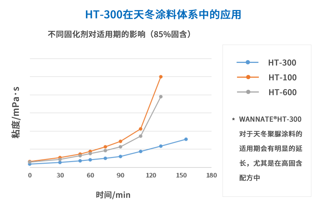 基于低粘、长适用期、高相容性的特点,HT-300可应用于天冬聚脲、高固低粘涂料、水性涂料和UV树脂等多种体系。