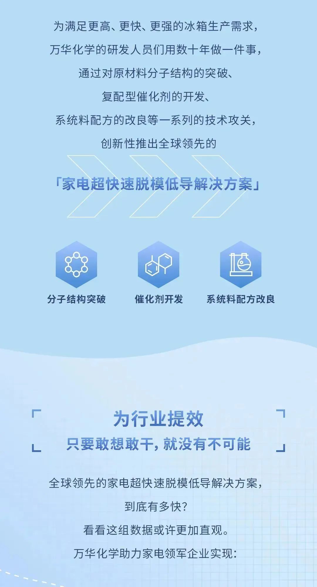 万华化学家电超快脱低导解决方案,让世界见证中国速度!