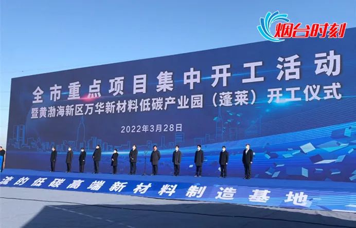2022年3月28日,烟台市举行全市重点项目集中开工活动,主会场所在的万华新材料低碳产业园,总投资2380亿元,预计总产值3000亿元,启动开工的万华新材料低碳产业项目一期,总投资316亿元,计划2024年投产,建成后年产值约270亿元,利税55亿元。
