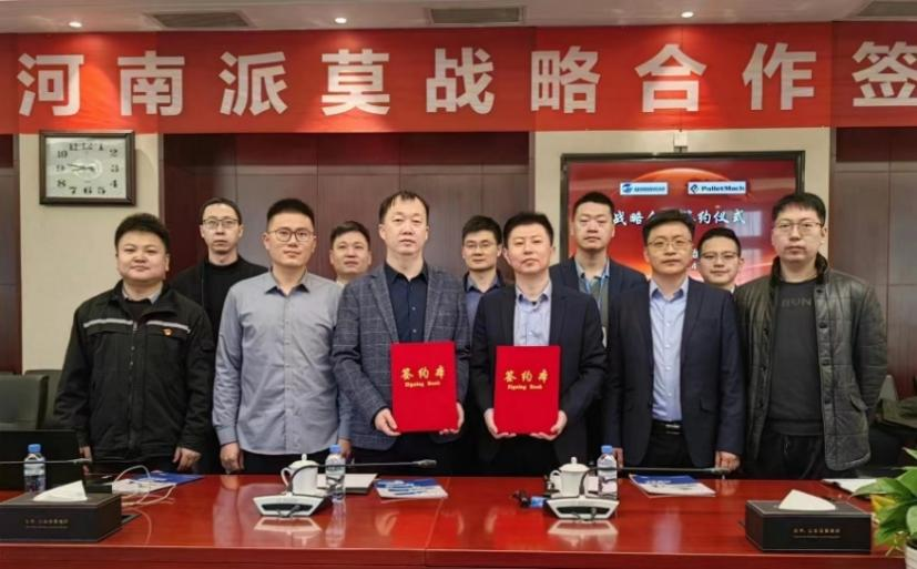 2月4日,河南派莫机械设备有限公司(以下简称“派莫机械”)到访万华化学磁山总部,与万华化学交流MDI模压托盘合作模式并签订战略合作协议。派莫机械设备有限公司董事长拓耀、总经理张炜、市场总监杨猛、技术总监李海波、营销总监郭朝伟,万华化学(北京)有限公司营销总监赵有刚、销售经理高峰、研发经理涂松等人出席战略合作协议签约仪式。