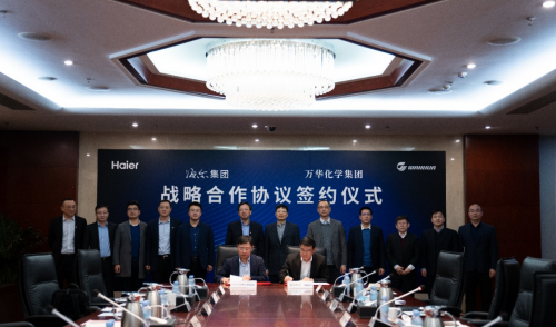 万华化学与海尔有着悠久的合作历史,多年来双方就业务发展、产品开发、企业管理等方面保持密切合作。本次协议的签署围绕全球业务布局、联合创新、工业互联、低碳环保等领域将万华化学与海尔的合作关系推向了新的高度,标志着双方进入战略性、全面性、长远性合作发展的新阶段。