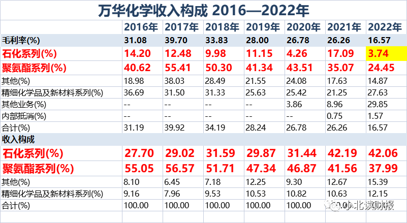 这是因为净利润跟商品价格直播挂钩,但是商品价格波动大不是万华能左右的,因此,万华选择的是在商品价格波动大的情况下,增加销量,扩大销售规模,让现金流正常回收,等到商品价格回升的时候,万华的净利润自然而然会回升。如下图所示,2022年万华聚氨酯系列产品的销量同比增长7.44%。石化系列产品的销量同比增长16.40%,精细化学品及新材料系列的销量同比增长24.52%。