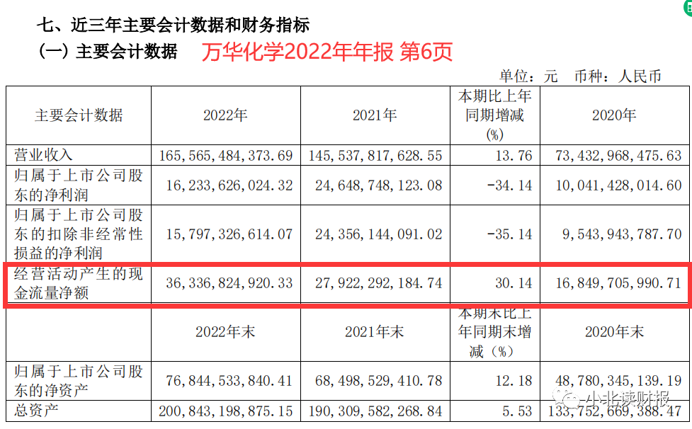 解读2021年年报的时候,我们就在直播里讲万华的现金流入很好,2022年我们依旧能看到这个特征。