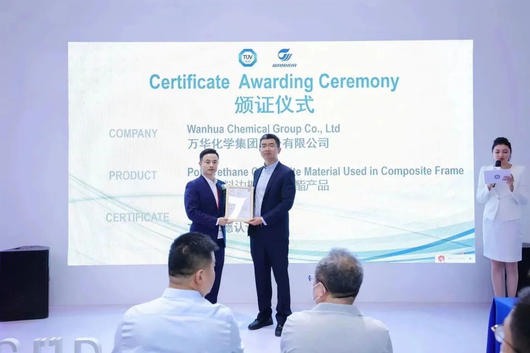 5月24日,SNEC第十六届(2023)国际太阳能光伏与智慧能源(上海)大会期间, TüV南德意志集团(以下简称“TüV 南德”)为万华化学光伏组件复合材料边框用聚氨酯产品颁发基于TüV SüD技术规范PPP 58208A 的TüV南德公告材料认证证书。万华化学成为在全球范围内首批收获光伏组件复合材料边框用聚氨酯公告材料TüV南德认证证书的企业。