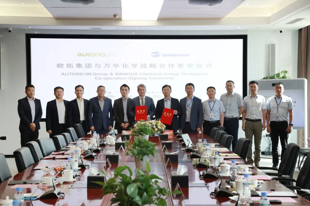 6月5日下午,万华化学与欧拓集团战略合作签约仪式在万华化学磁山总部隆重举行。欧拓集团亚洲区 CEO Andreas Kolf、CFO朱斌,万华化学副总裁李立民等相关领导出席签约仪式。